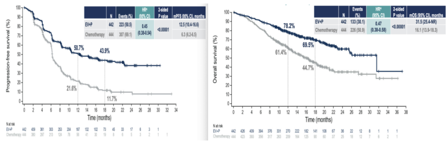 图1.EV-302/KEYNOTE-A39研究PFS(左)、OS(右)结果