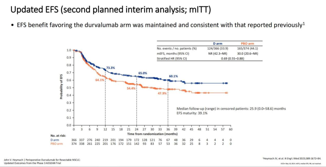 更新后的数据证实了度伐利尤单抗在围手术期治疗中给患者带来EFS的获益,并提高了DFS,安全性可管理,没有新的安全性信号出现。