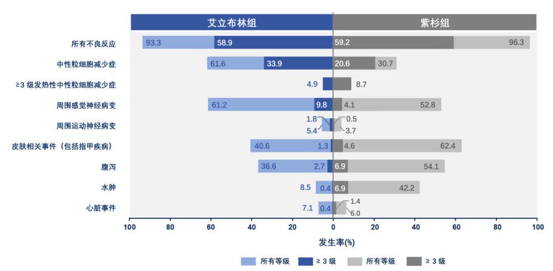 EMERALD研究中艾立布林组及紫杉醇组安全性表现