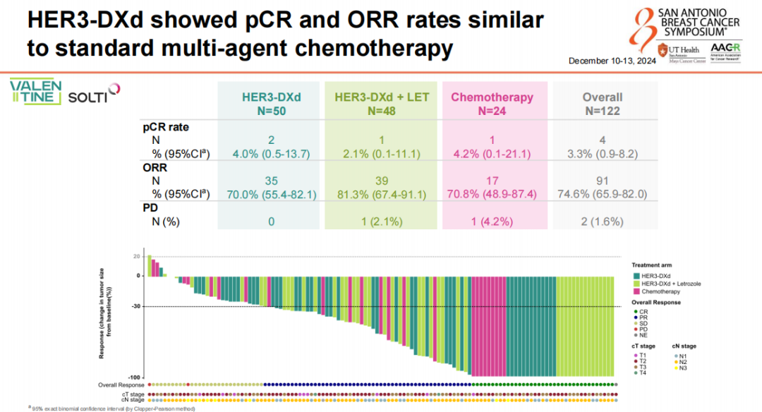 Furthermore,for HER2-negative hormone-positive disease,I think there is also added value of upcoming new ADCs,antibody drug conjugates.And one of the phase two data presented by Mafalda and her team from the SOLTI VALENTINE trial is also showing added value of HER3-DXd with or without letrozole.And actually,women who are actually put on the tested arm,they have less side effects and better compliance,and also better clinical outcome.This is also showing added value of upcoming ADCs,and with a plethora of the added value and clinical significance of ADCs.
