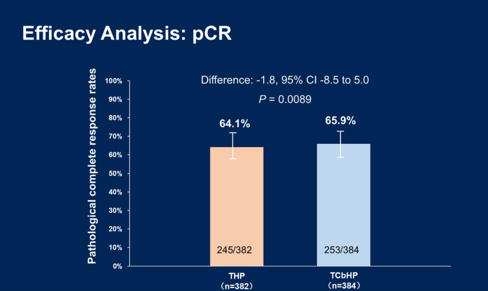 与TCbHP相比,THP提供了非劣效的pCR率,且耐受性更好。在存在双重HER2阻断的情况下,省略卡铂可能是一种有效的去强化新辅助治疗策略,适用于HER2阳性早期乳腺癌患者。