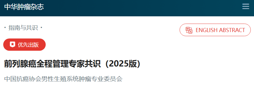 指南共识丨前列腺癌全程管理专家共识(2025版)要点