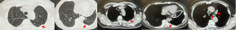 图5:患者手术前(2023.11)胸部CT肺窗及纵隔窗