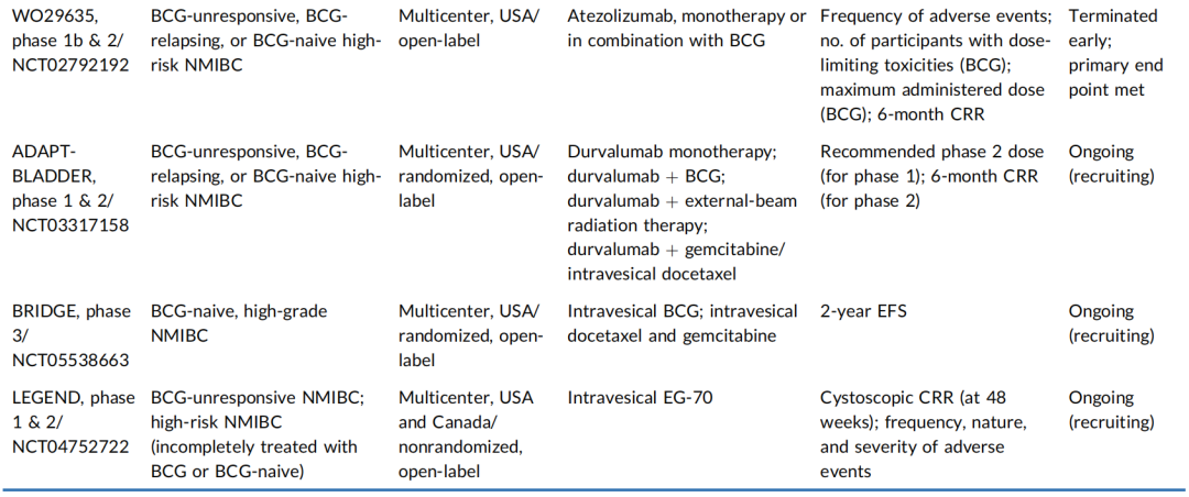表2.已完成或在研的NMIBC围术期治疗研究