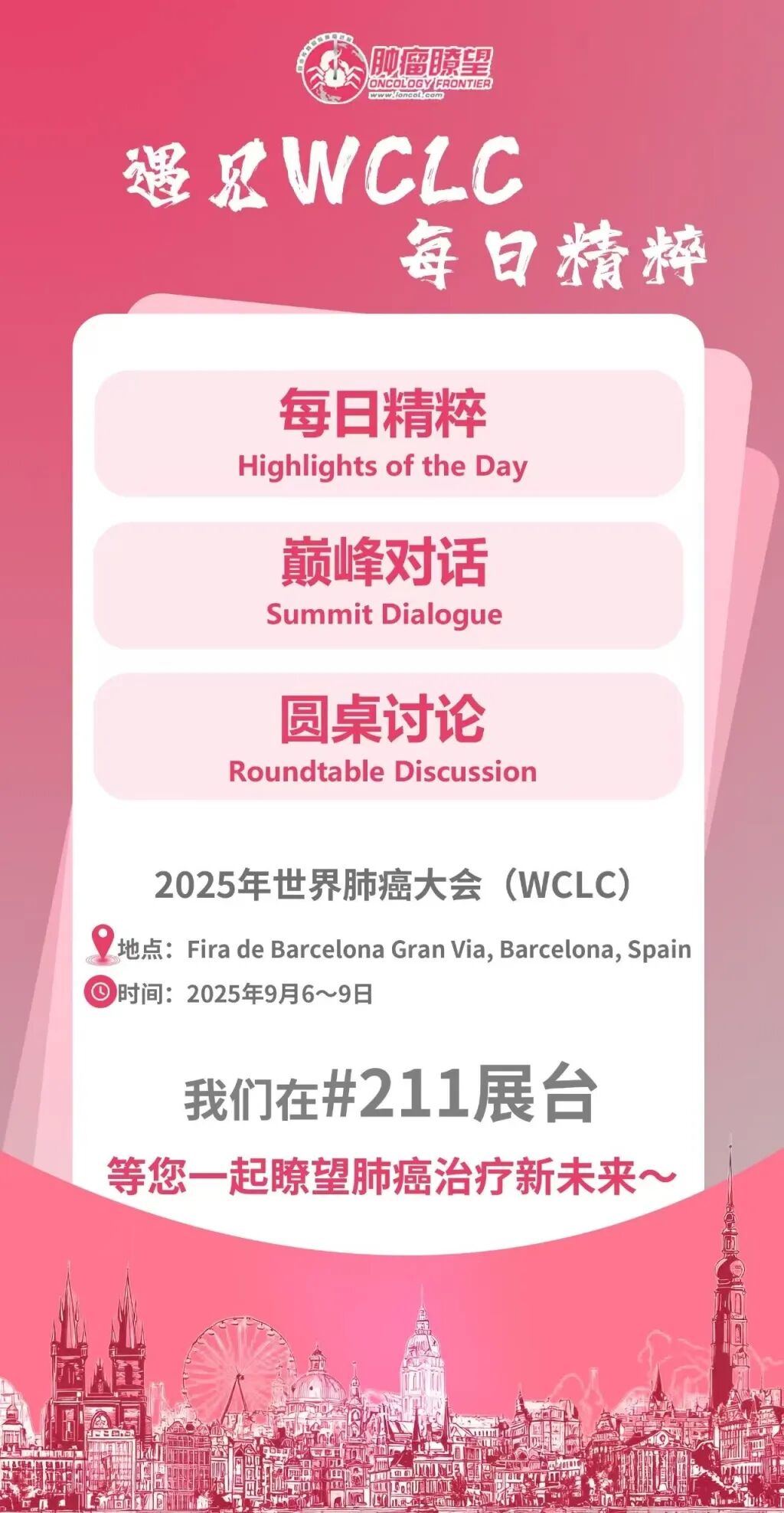 遇见WCLC,每日精粹丨WCLC 2025盛会将启!《肿瘤瞭望》零距离直击现场,与中外大咖共赴巴塞罗那之约!