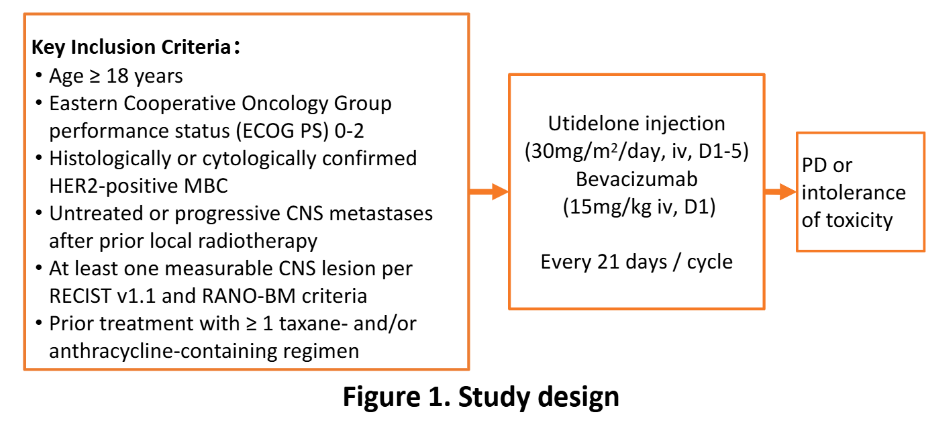 优替德隆联合贝伐珠单抗治疗HER2阳性乳腺癌脑转移(U-BOMB-HER):一项多中心、单臂Ⅱ期临床研究。