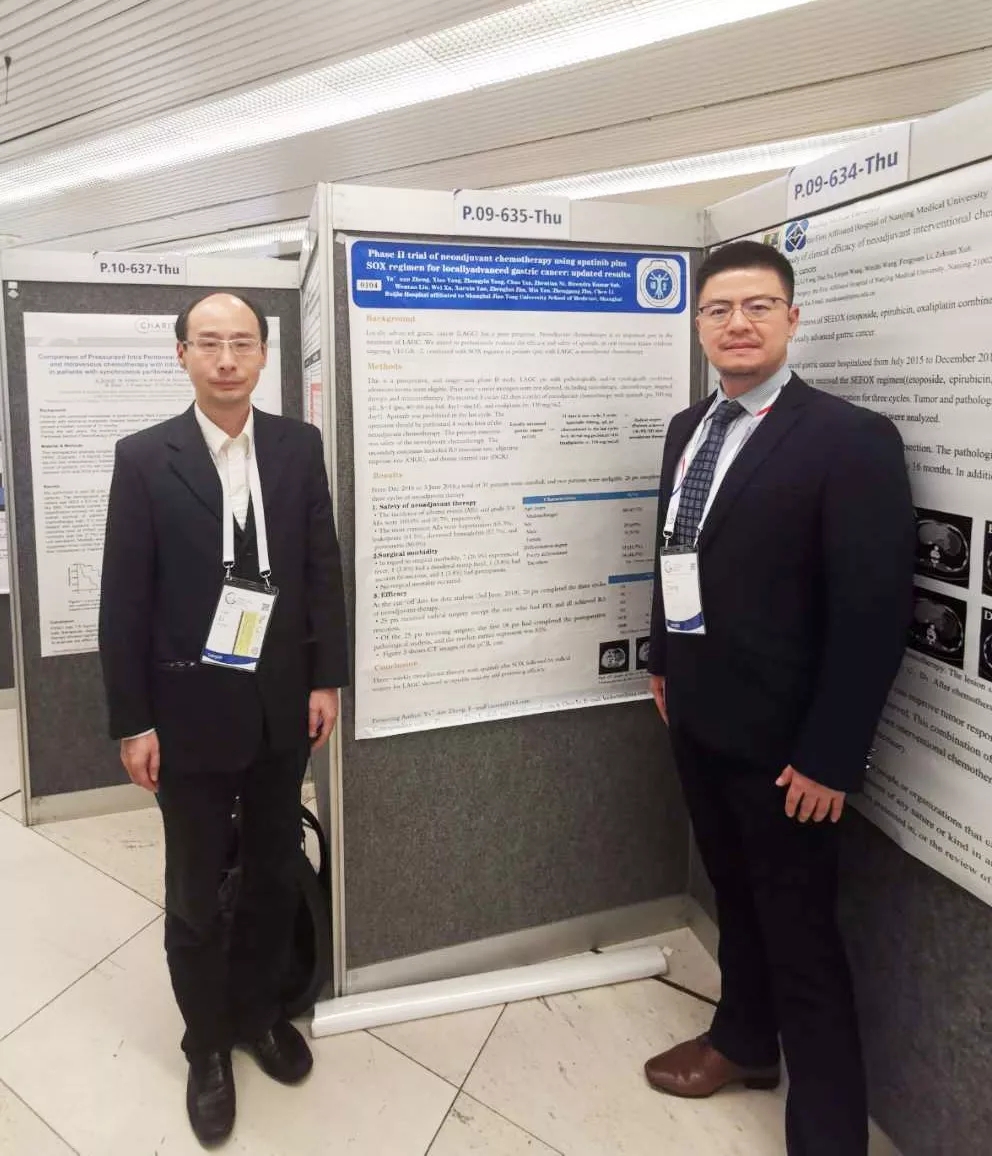 该研究作者瑞金医院李琛教授(左)和郑亚南教授(右)在IGCC壁报前合影