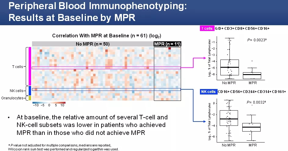 相比非MPR的患者,MPR患者的数个T细胞和NK细胞亚集的基线水平更低