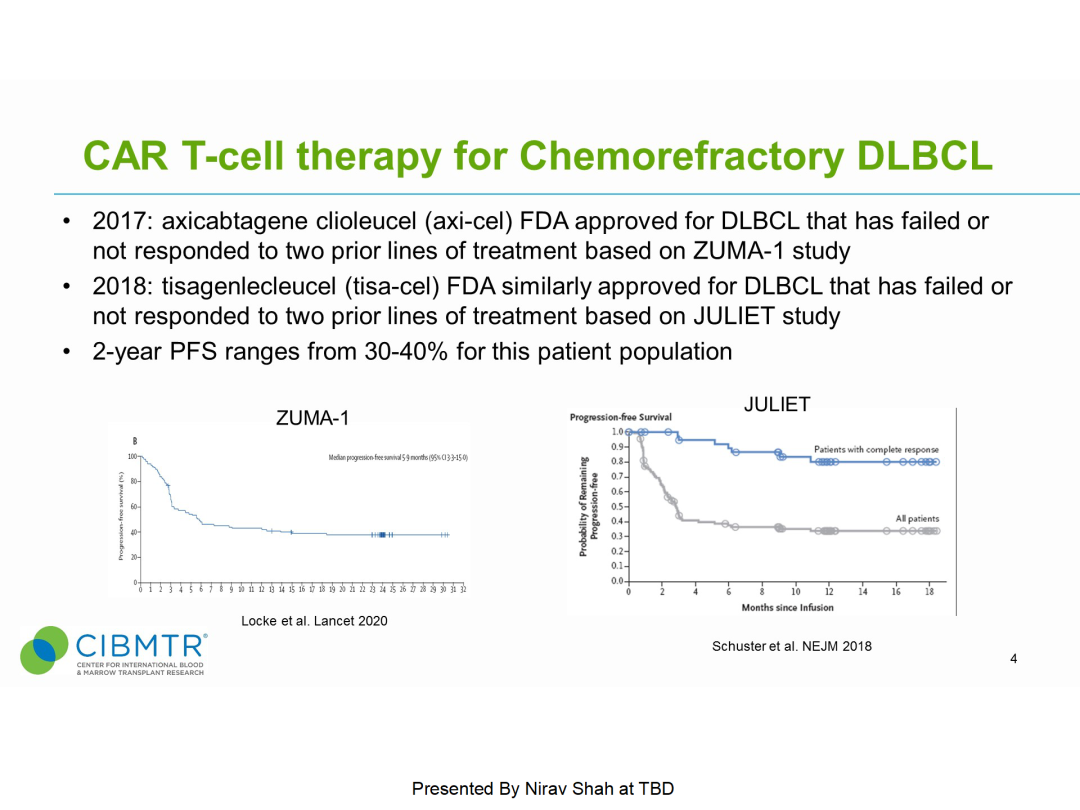 4 Locke, F. L. et al. Long-term safety and activity of axicabtagene ciloleucel in refractory large B-cell lymphoma (ZUMA-1): a single-arm, multicentre, phase 1-2 trial. Lancet Oncol 20, 31-42, doi:10.1016/S1470-2045(18)30864-7 (2019).