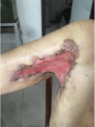 2020年3月我院血管外科以皮肤感染收入院。入院查体:右侧腋窝可见一不规则伤口,皮肤及皮下软组织缺失,12*11cm,心肺腹未见异常,浅表淋巴结未及肿大,周身皮肤及软组织未及包块。