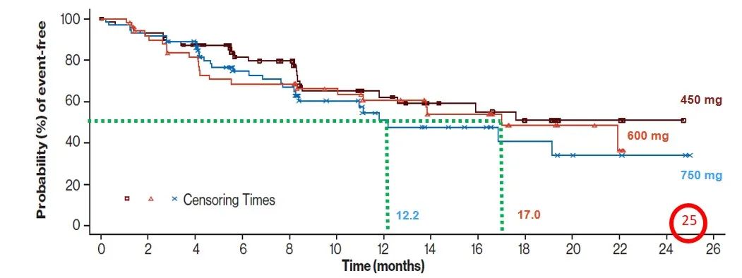 研究结果显示,对于ALK阳性NSCLC患者,无论之前是否接受过克唑替尼治疗和脑部放疗,塞瑞替尼对活动性脑转移都显示出抗肿瘤疗效。从第3组的数据中可以看到,既往是否接受放疗并不会显著影响患者接受塞瑞替尼的效果;而ASCEND-7第4组研究发现,既往无脑部放疗,无ALK-TKI治疗的患者,塞瑞替尼疗效显著,中位PFS为7.9月,预估6个月无事件概率为63.4%;中位OS尚未达到,预估12个月无事件概率为77.9%。