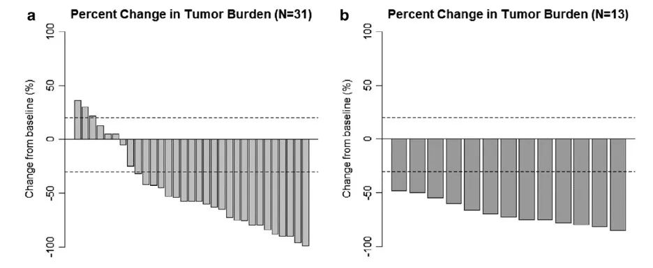 在前瞻性研究中,塞瑞替尼表现亮眼,真实世界中的数据如何呢?既往一项真实世界研究发现,接受塞瑞替尼治疗的患者较一代克唑替尼有较好的缓解率(100.0% vs 74.2%,P=0.082),且塞瑞替尼组无评估为PD的患者,缓解深度更深。全人群的PFS更是达到32.3个月。