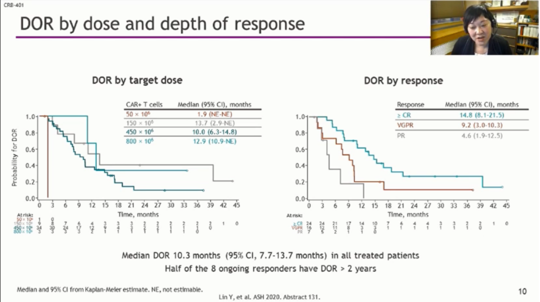 但是,在疗效提升方面最显著的仍属免疫治疗,主要包括两大类,一类是CAR-T治疗,另一类是双特异性抗体。在今年的ASH大会上更新了【5】bb2121长期随访的结果,其疗效令人兴奋。KarMMa研究显示bb2121的疗效持久,对于绝大部分(70%-80%)患者有疗效,中位缓解持续时间超过1年,中位无进展生存(PFS)为9-10个月,我们期待缓解持续时间能更长,但考虑到这些MM患者在既往平均接受了5-6线治疗,并且对现有的药物治疗不敏感,bb2121能取得这样的疗效已经是非常不错的了,因此bb2121正接近获得FDA的上市批准。