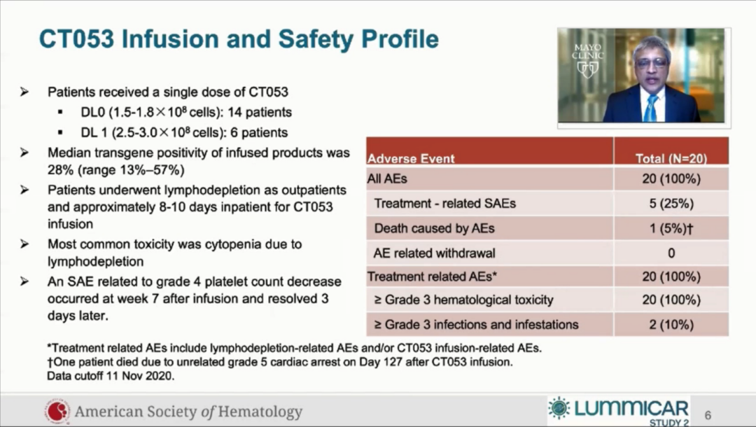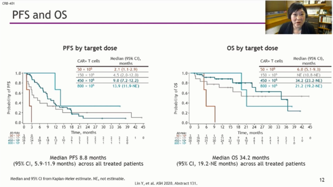 此外,Legend公司原创研发的CAR-T产品【6】cilta-cel也正在开展相关临床研究,纳入了超过100例患者,其客观缓解率(ORR)接近100%,并且获得了深度缓解,目前中位PFS尚未达到,但基于目前的研究数据而言,中位PFS将达到1.5年,即便是既往接受过平均6线以上治疗的患者,这同样是极具前景的疗效数据。此外,还有一些新型的CAR-T产品正在研发中,包括CARsgen公司研发的CT053,其机制与以往基于慢病毒技术的CAR-T不同,它能缓解慢病毒为载体带来的相关问题,CT053的新转运模式能使得长期随访的疗效更安全。