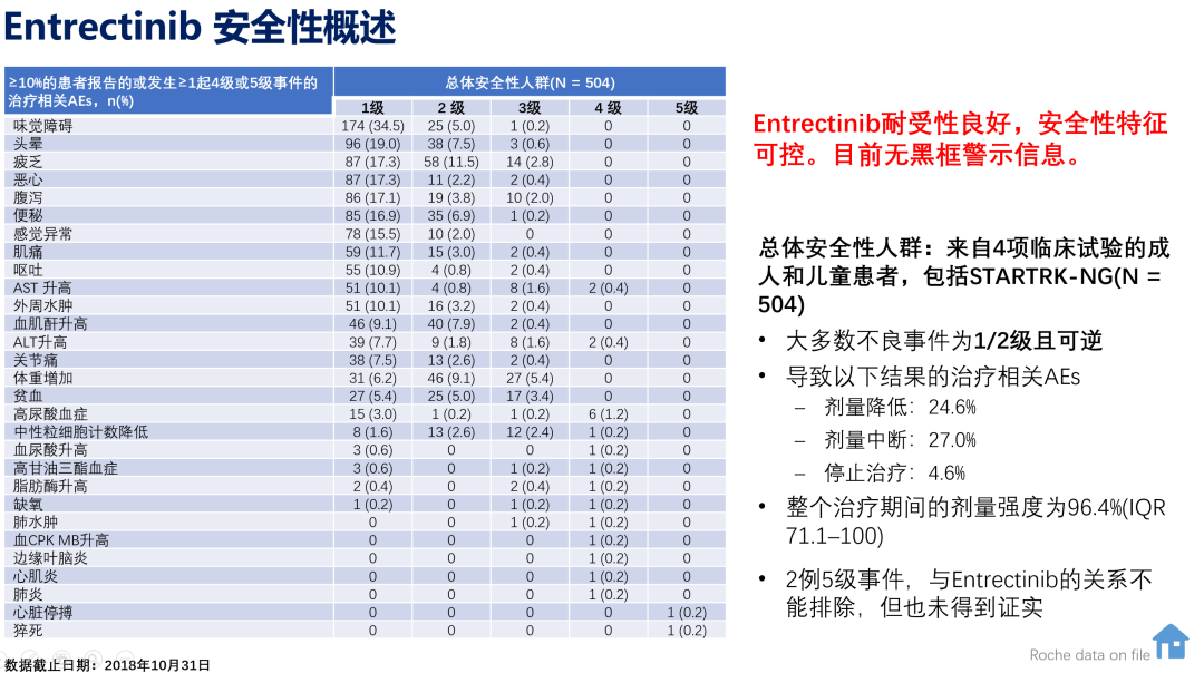 陆舜教授:我十分认同您的观点,在对STARTRK-2研究设计时,虑及儿童患者对药物的耐受程度和安全性,在最终的患者入选标准中仅纳入18岁以上的成人患者。对于儿童患者的疗效和安全性的分析,还需更严密、更谨慎的对待。