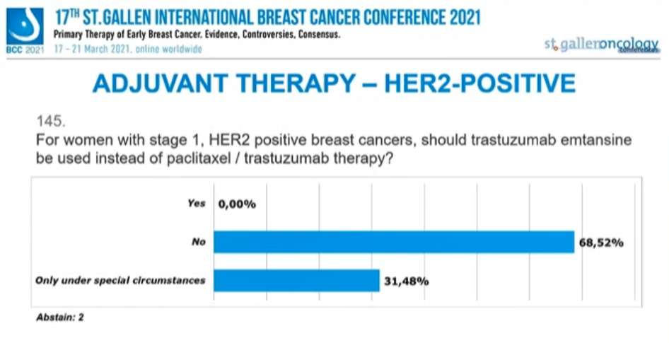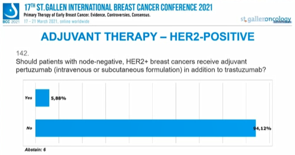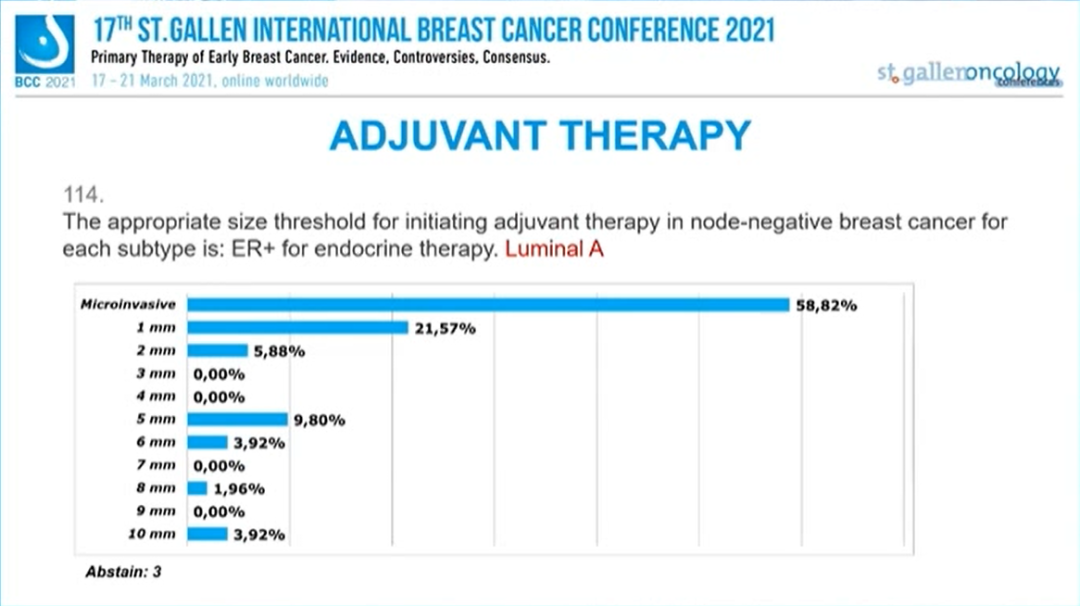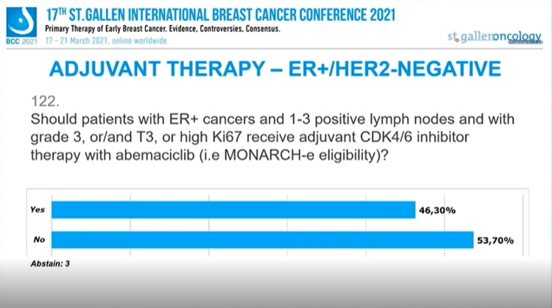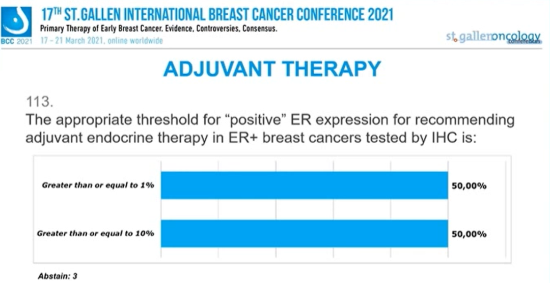 编者按:当地时间3月21日,在Eric Winer教授的主持下,第十七届圣加伦国际乳腺癌大会(SG-BCC 2021)的专家完成了投票,在早期乳腺癌系统治疗方面,昨天首场投票中已经讨论了新辅助治疗的策略,今天的讨论进一步总结“辅助治疗”,以及个亚型乳腺癌的辅助治疗策略。