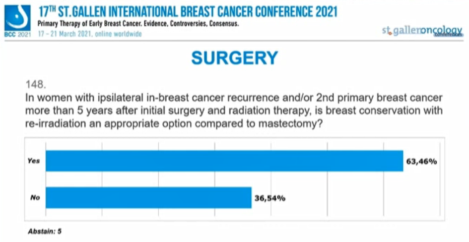 对于接受再程放疗的患者,一半的专家认为可以保乳。