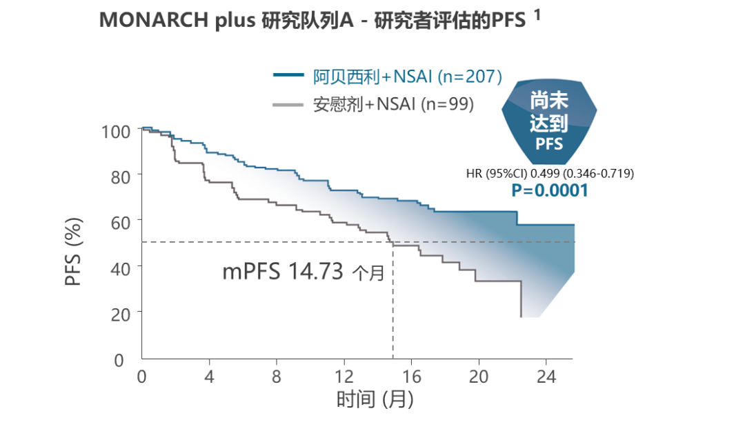 基于该项研究结果的发表,阿贝西利获得药品监管部门的认可,两项适应症获批:与芳香化酶抑制剂联合用于HR+/HER2-局部晚期或转移性绝经后女性乳腺癌初始内分泌治疗,或与氟维司群联合用于内分泌治疗失败的晚期或转移性HR+/HER2-女性乳腺癌患者。