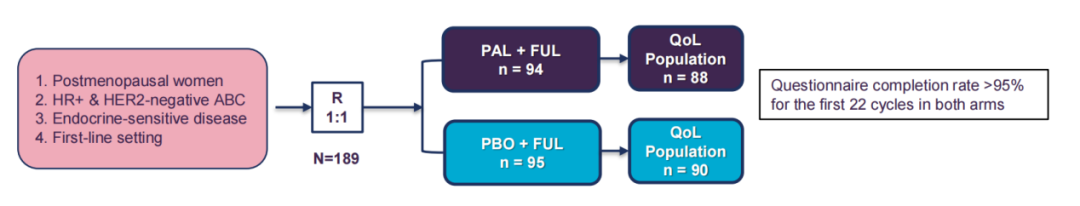 在FLIPPER研究中,对于HR+/HER2-内分泌敏感晚期乳腺癌的患者(pts)的一线治疗,与fulvestrant(FUL)/安慰剂(PBO)相比,fulvestrant(FUL)/palbociclib(PAL)显著改善了患者的无进展生存期(PFS)。本届大会上,西班牙GEICAM乳腺癌合作组对患者健康相关的QoL(HRQoL)结果进行了汇报。