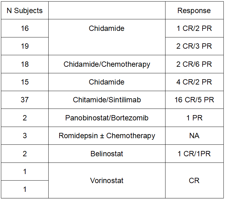 表2、HDAC抑制剂治疗NK/T细胞淋巴瘤