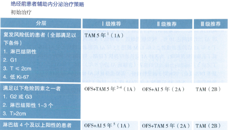 《中国早期乳腺卵巢功能抑制临床应用专家共识》[2]对绝经前激素受体阳性的早期乳腺癌中、高危患者,或STEPP分析的较高风险患者推荐OFS+AI治疗,OFS+TAM也是合理的选择。
