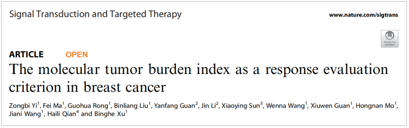 [1]Yi Z, Ma F, Rong G, et al. The molecular tumor burden index as a response evaluation criterion in breast cancer. Signal Transduct Target Ther. 2021;6(1):251. Published 2021 Jul 7. doi:10.1038/s41392-021-00662-9[2]Ma F, Guan Y, Yi Z, et al. Assessing tumor heterogeneity using ctDNA to predict and monitor therapeutic response in metastatic breast cancer [published correction appears in Int J Cancer. 2020 Jun 15;146(12):E8]. Int J Cancer. 2020;146(5):1359-1368. doi:10.1002/ijc.32536