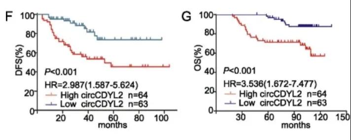 ΔK-M分析circCDYL2表达与DFS和OS之间的相关性