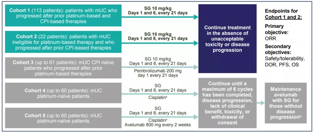 队列3入组的是未经免疫治疗但经过铂类治疗进展的mUC患者,给予戈沙妥珠单抗+帕博利珠单抗联合治疗。ADC联合免疫治疗能否取得更瞩目的成绩,TROPHY-U-01队列3数据将在本次ASCO-GU大会揭晓。