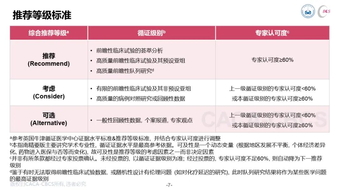 证据级别推荐可以清晰、直观的告诉大家相关方案的推荐等级,使指南的操作性增强。但同时面临的缺点是指南内容相对来说知识点的覆盖比较少,导致很多临床医生,特别是基层医生对循证医学证据及方案使用条件了解较少。