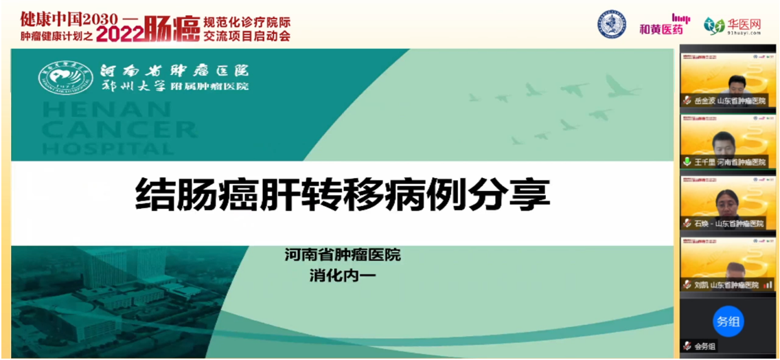 该项目将在全国21家肠癌规范化诊疗院际交流基地医院,针对肠癌临床诊疗薄弱环节,开展面向区域基层医院的交流会议,切实助力健康中国2030行动。项目由华医网承办,和黄医药为该项目提供了公益支持。按照工作计划,结合新冠疫情散点多发的形势,截至4月底,10家基地医院已就晚期结直肠癌诊疗现状,治疗领域前沿进展以及指南指导下晚期结直肠癌规范化诊疗展开了在线院际交流会议,并就现行病例进行讨论和点评。覆盖地域包括辽宁、江苏、天津、河北、新疆、黑龙江、湖南、湖北、四川、山东、河南、浙江等省、市、直辖区。