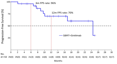图2. SBRT联合信迪利单抗治疗复发或寡转移HCC的PFS结果