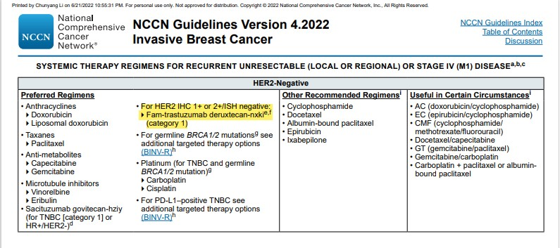 △2022 v.4版NCCN指南 HER2阴性晚期乳腺癌