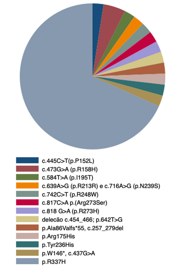 考虑到其特殊的致癌作用,遗传性乳腺癌与散发性乳腺癌可能表现出不同的行为。例如,胚系BRCA1 PV患者的三阴性乳腺癌比例很高,而LFS患者的HER2阳性肿瘤比例较高。然而,虽然一些研究评估了BRCA1/2胚系突变携带者的乳腺癌表型,但缺乏关于TP53 PV胚系患者乳腺癌表型和预后的数据。在巴西,密码子R337H的特异胚系TP53 PV与乳腺癌的高风险相关。个体TP53 p.R337H携带者的终生癌症发病率与其他LFS携带者相似(约90%),但在年轻时的外显率较低。携带TP53 p.R337H的患者在30岁时出现恶性肿瘤的比例不到20%,而携带其他TP53 PV的患者比例为50%。