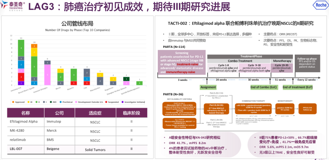 LAG3在黑色素瘤治疗已经成功,在肺癌治疗也初见成效。两项Ⅱ期研究(TACTI-002和NEOpredict-Lung)均得到了较好的疗效和可耐受的安全性结果。