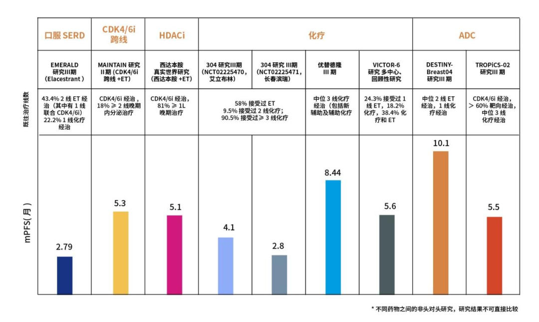 晚期HR+乳腺癌两线内分泌耐药后方案的PFS