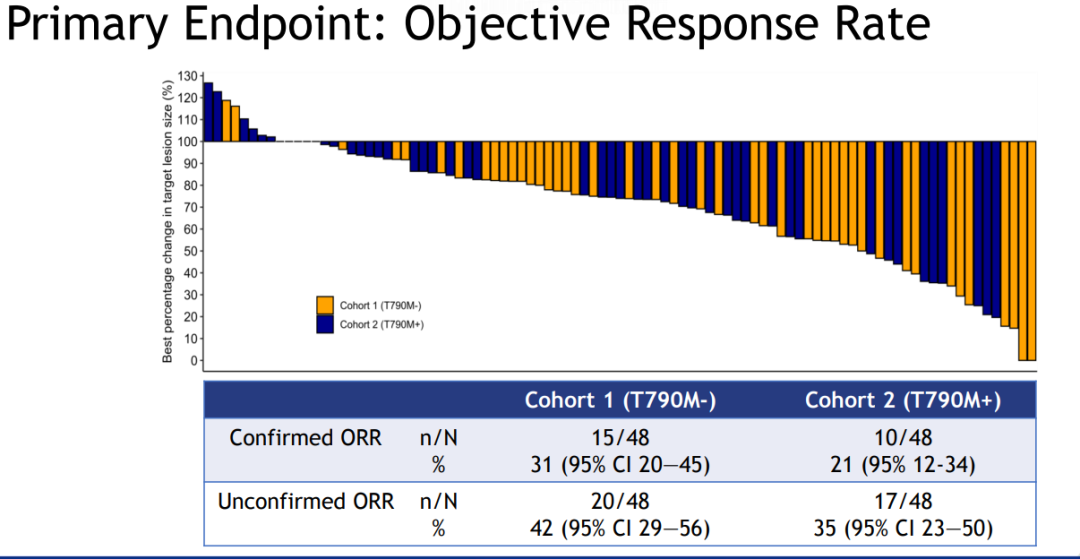 中位随访22个月(四分位间范围15-31个月)后,队列1和队列2的ORR分别为15/48(31%,95%CI: 20-45)和10/48(21%,95%CI: 12-34)。