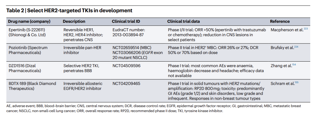 表2正在开发的抗HER2 TKIs