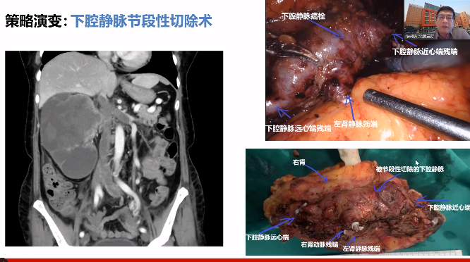 既往在开放手术中很少做下腔静脉节段性切除,但随着经验不断增加,我们发现其实在腔镜下,腔静脉的节段性切除更加方便,在下腔静脉远心端进行对侧静脉切除完全可以在直视下完成,大大降低了手术难度,所以我们把原来的开放术式变成了完全腔镜En-block切除。