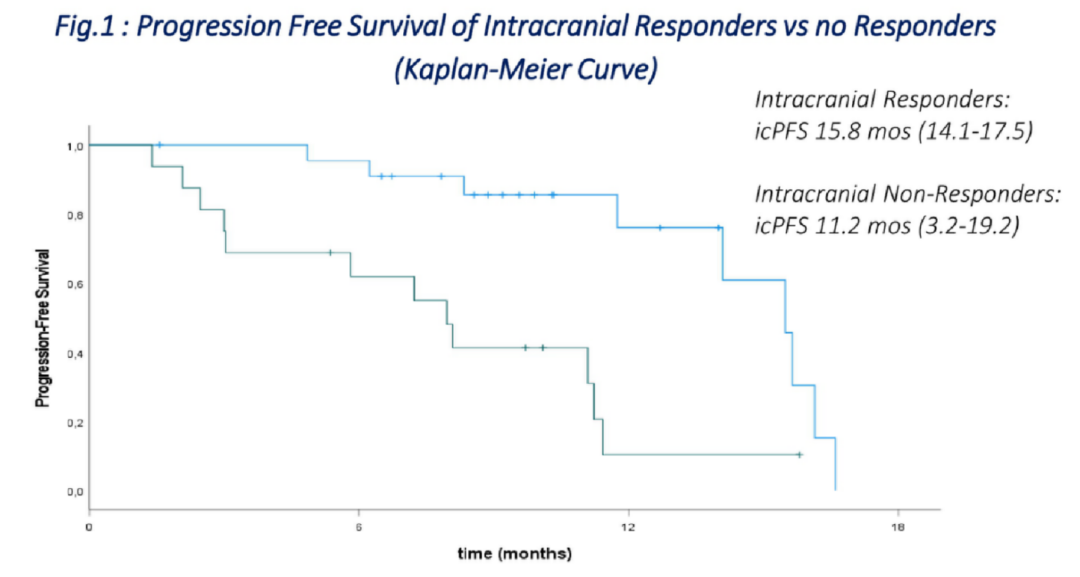 △颅内缓解和非缓解患者的PFS K-M曲线