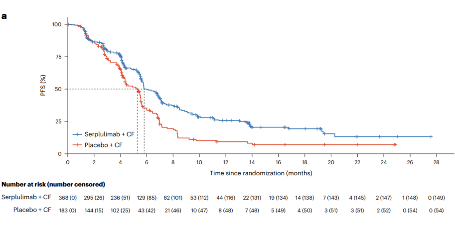 该研究探索了斯鲁利单抗对比安慰剂联合化疗1L治疗PD-L1阳性的局晚/复发或转移性ESCC的疗效。结果显示,斯鲁利单抗联合化疗组由的中位PFS和OS较对照组均有延长,CPS≥10人群获益更为显著。总人群中,中位OS为15.3 vs.11.8个月,死亡风险降低32%(HR=0.68,P=0.0020),其中位PFS为5.8 vs.5.3个月,疾病进展风险降低40%(HR=0.60,P<0.0001)。CPS≥10人群中,斯鲁利单抗联合化疗组中位OS长达18.6个月,较对照组绝对延长4.7个月,死亡风险降低41%(HR=0.59,P=0.0082);中位PFS达7.1个月(对照组5.3个月),疾病进展风险降低52%(HR=0.48,P<0.0001),未出现显得安全信号。该研究成功为局部晚期/转移性、PD-L1阳性(CPS≥1)ESCC患者的一线治疗提供了更多中国数据,更为打造更适合中国患者的临床实践方案作出了突出贡献,被评为“重要研究”。