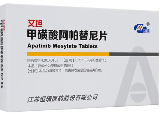 【制剂及规格】片剂 ,按阿帕替尼(C24H23N5O)计:0.25 g。